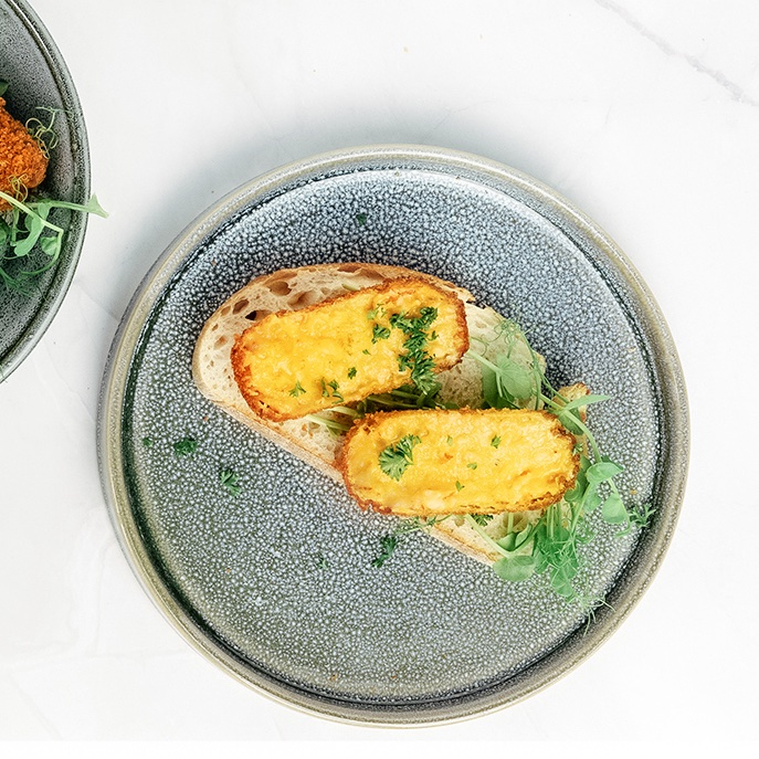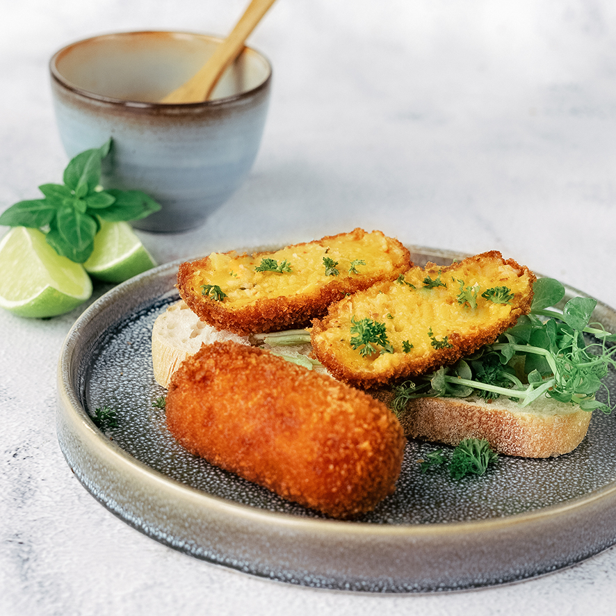 The lobster croquette has a fine and subtle flavor and contains no less than 22% lobster meat. Key ingredients such as cognac, fresh garlic, and basil give the lobster croquette its refined taste.