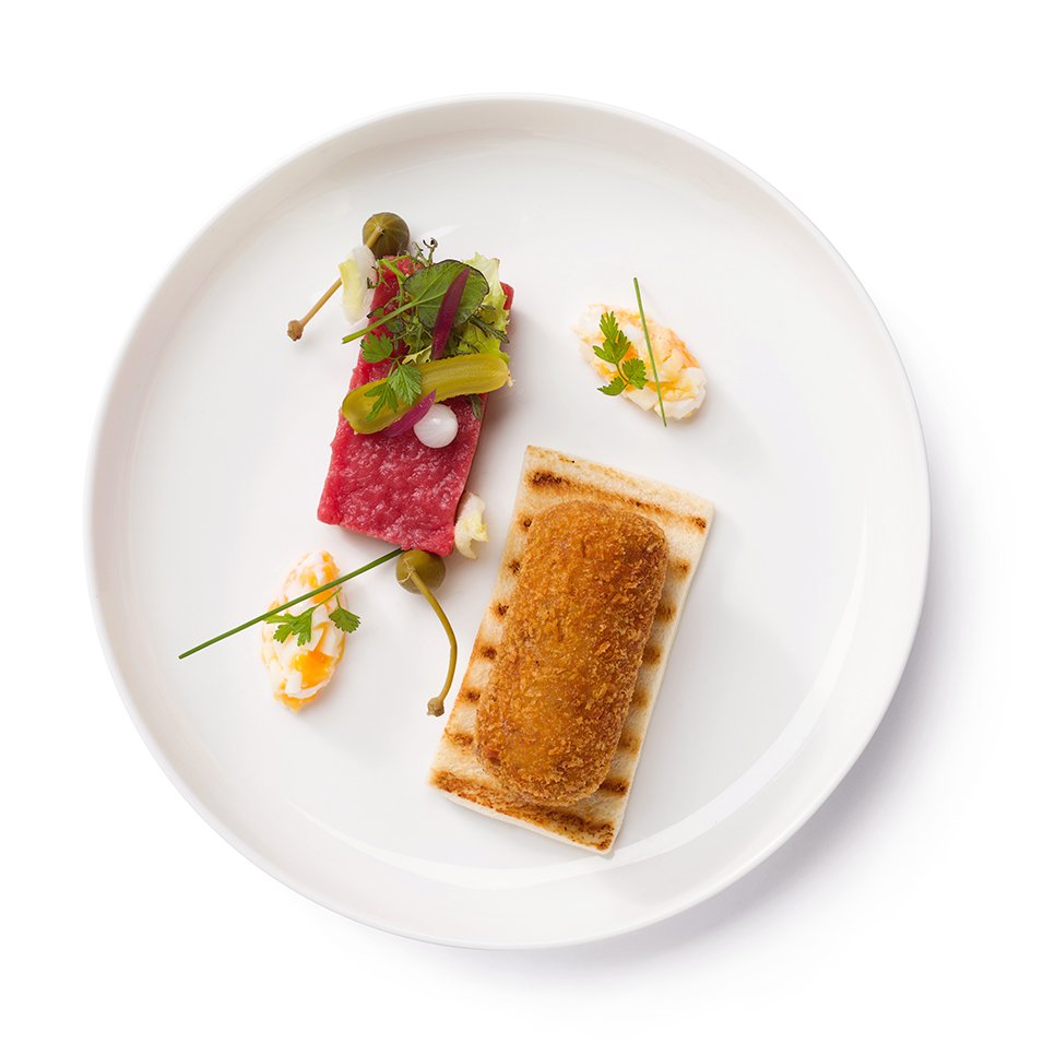 A Holtkamp Horeca classic for over 50 years. In 1969, Cees Holtkamp first made the veal croquette—short and thick, filled with diced veal, fresh ingredients, and a crisp breadcrumb crust.