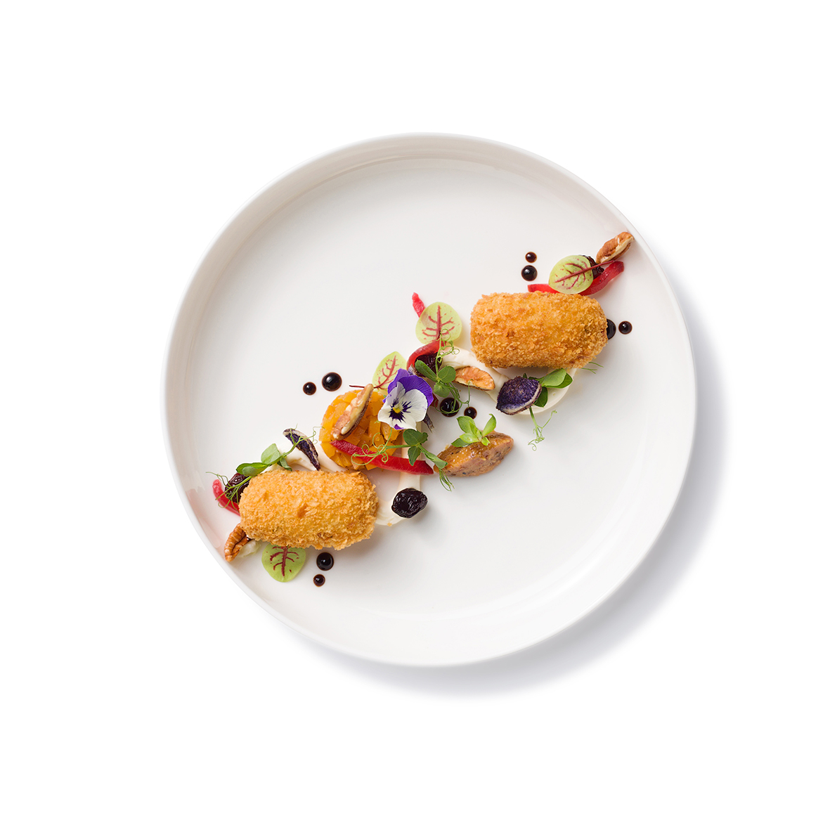 This Black Angus croquette has a bold flavor thanks to the addition of robust mustard, black pepper, allspice, fresh vegetables, and Espelette pepper.