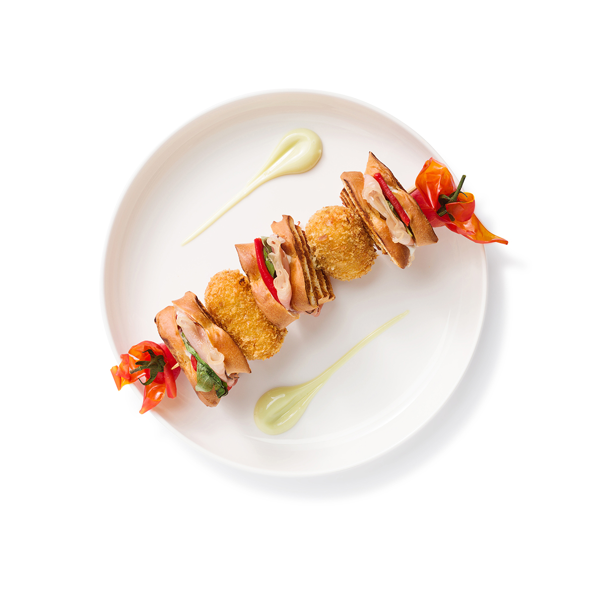 The lobster mini croquettes have a fine and subtle flavor and contains no less than 22% lobster meat. Key ingredients such as cognac, fresh garlic, and basil give the lobster croquette its refined taste.