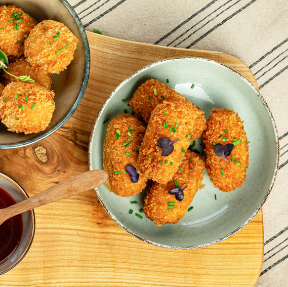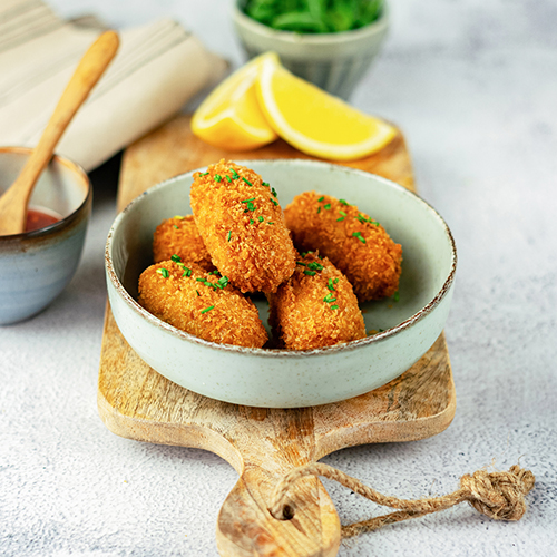 A Holtkamp Horeca classic. The foundation of our renowned shrimp croquette is Dutch North Sea shrimp. Ingredients such as fresh onion, sea salt, herbs, and spices give the creamy ragout its delightful taste.