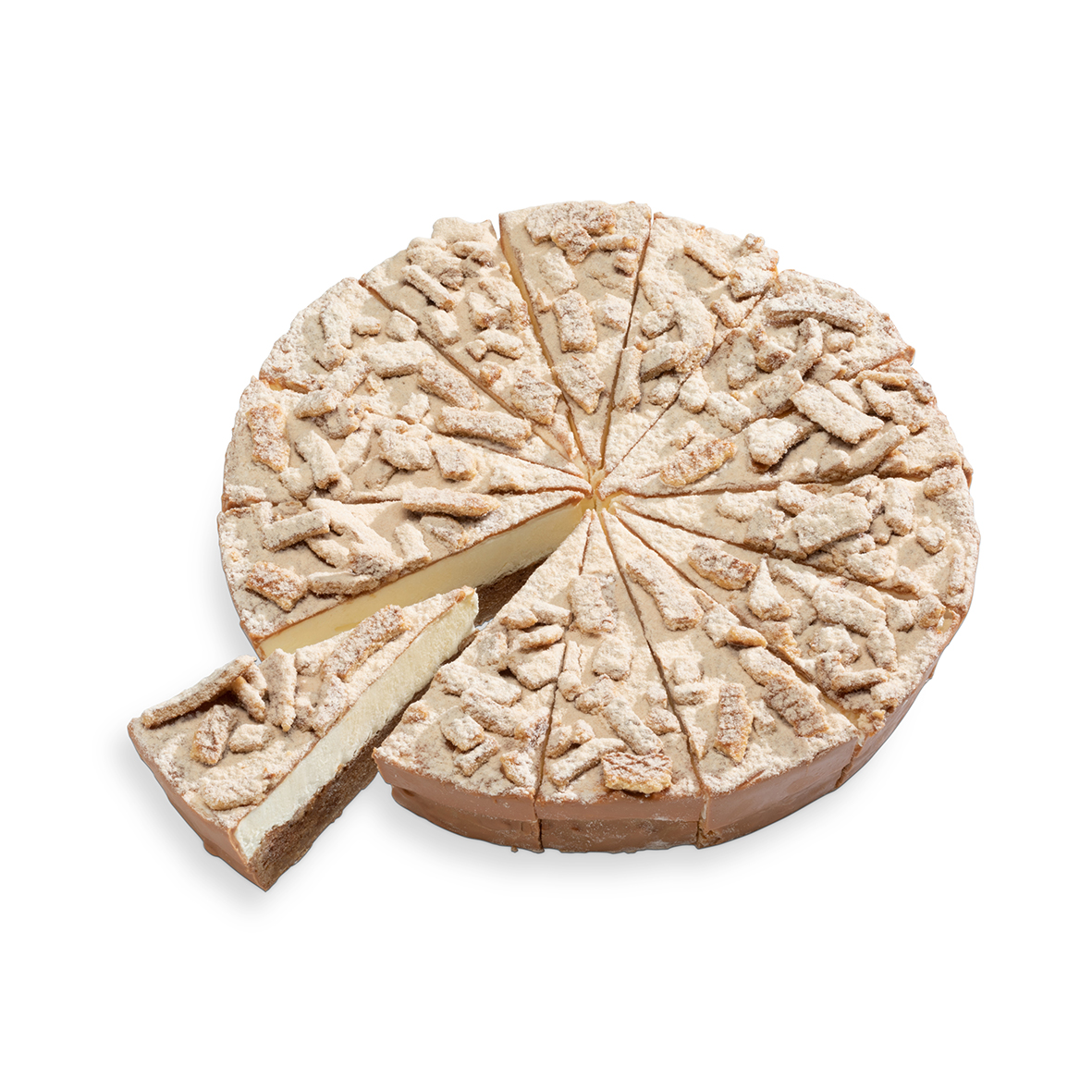 Buttery crumble base with a salted caramel glaze, soft stroopwafel cake, and whipped cream bavaroise. Garnished with stroopwafel bits and cinnamon powdered sugar.