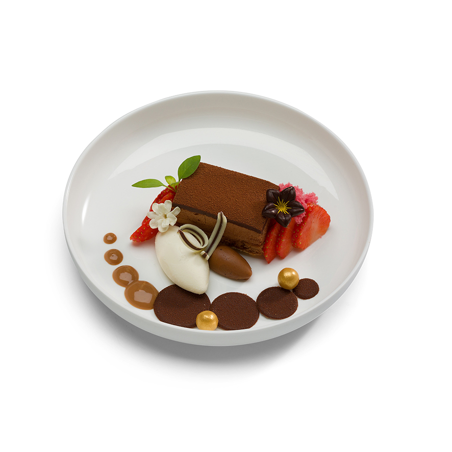 Chocolate and desserts are inseparable—it's a classic on every menu. The chocolate component from Holtkamp is a perfect match in any dessert: the well-balanced mousse offers endless combinations. Of course, these petit fours are also a delightful treat with coffee or tea, either on their own or as part of a high tea or sweet buffet.