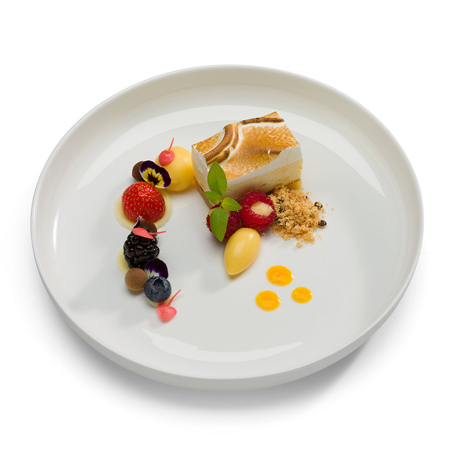 Almond base with lemon bavaroise, finished with hand-toasted Italian meringue.
